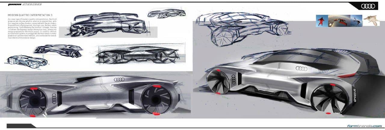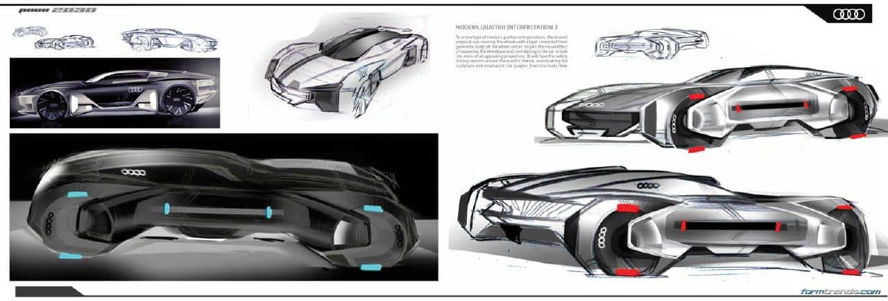The exterior design is a harmonious combination of past, present, and the future of Audi’s design language. Lee worked towards the keyword ‘Sexy Bauhaus’ and was inspired by the full volumes of the Audi TT, the integration between the design and functional features of the Audi R8, and the more aggressive, sharper and edgier feeling of the Prologue concept — Audi’s proposed new design direction.