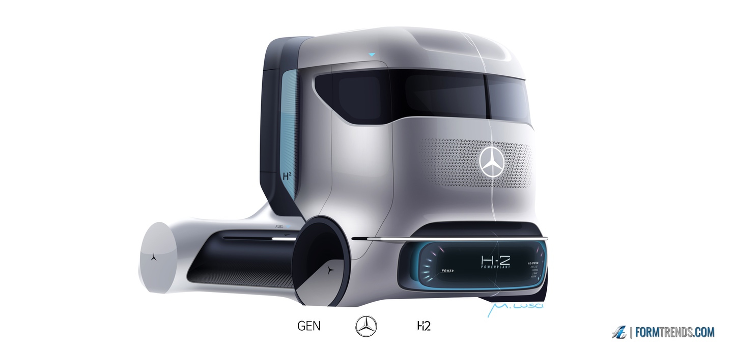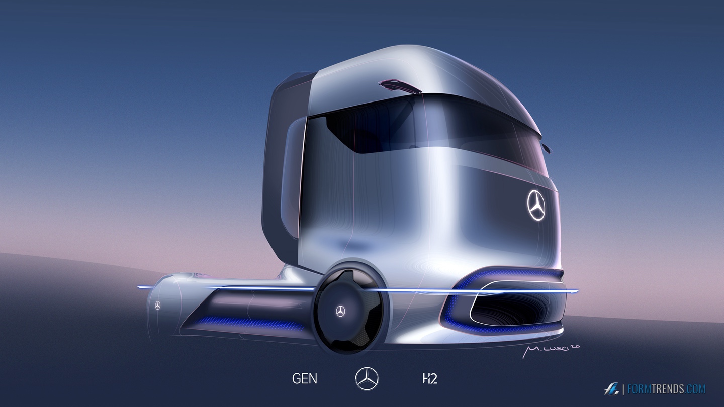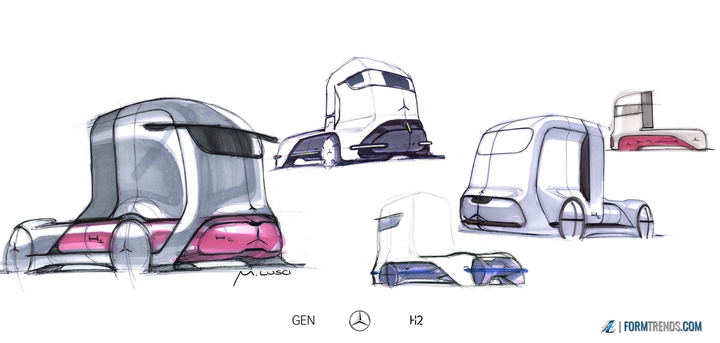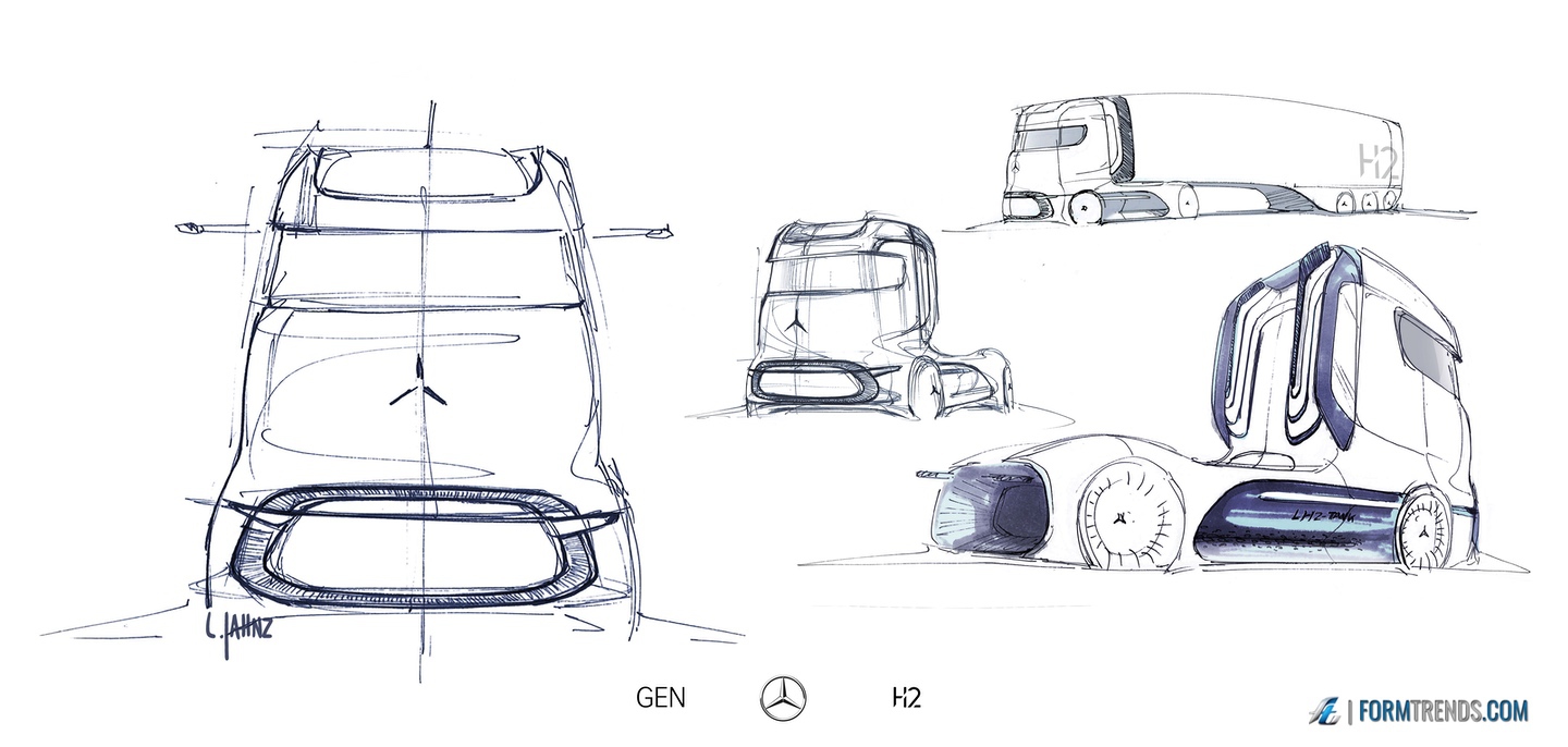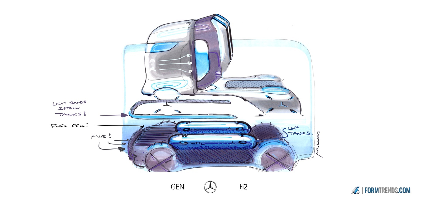 The Mercedes GenH2 hydrogen fuel cell heavy-duty vehicle was designed by the company’s in-house team in Sindelfingen. Here’s a video with project lead designer Mattia Lucsi talking us through some of the design details of the new truck.