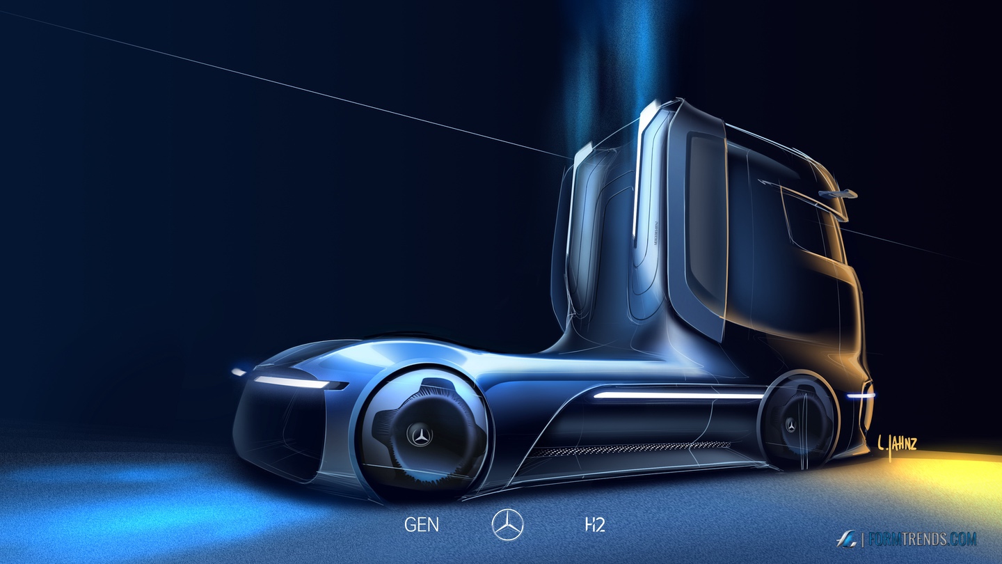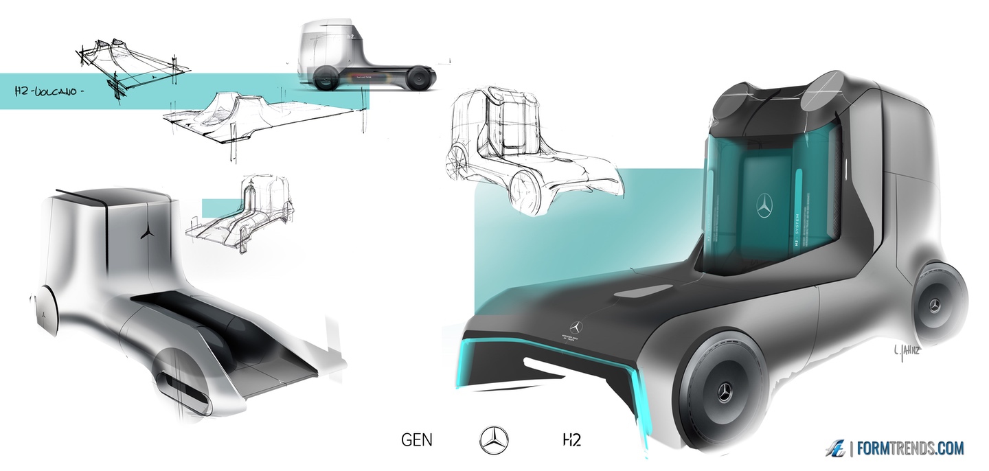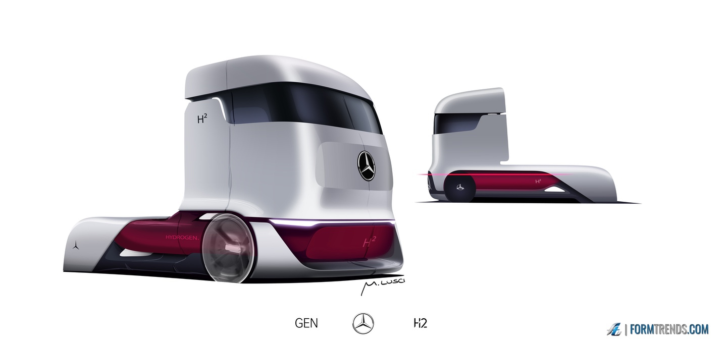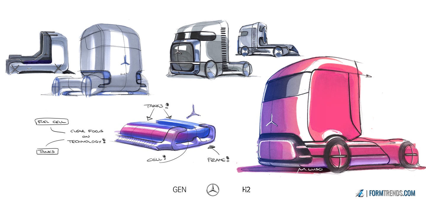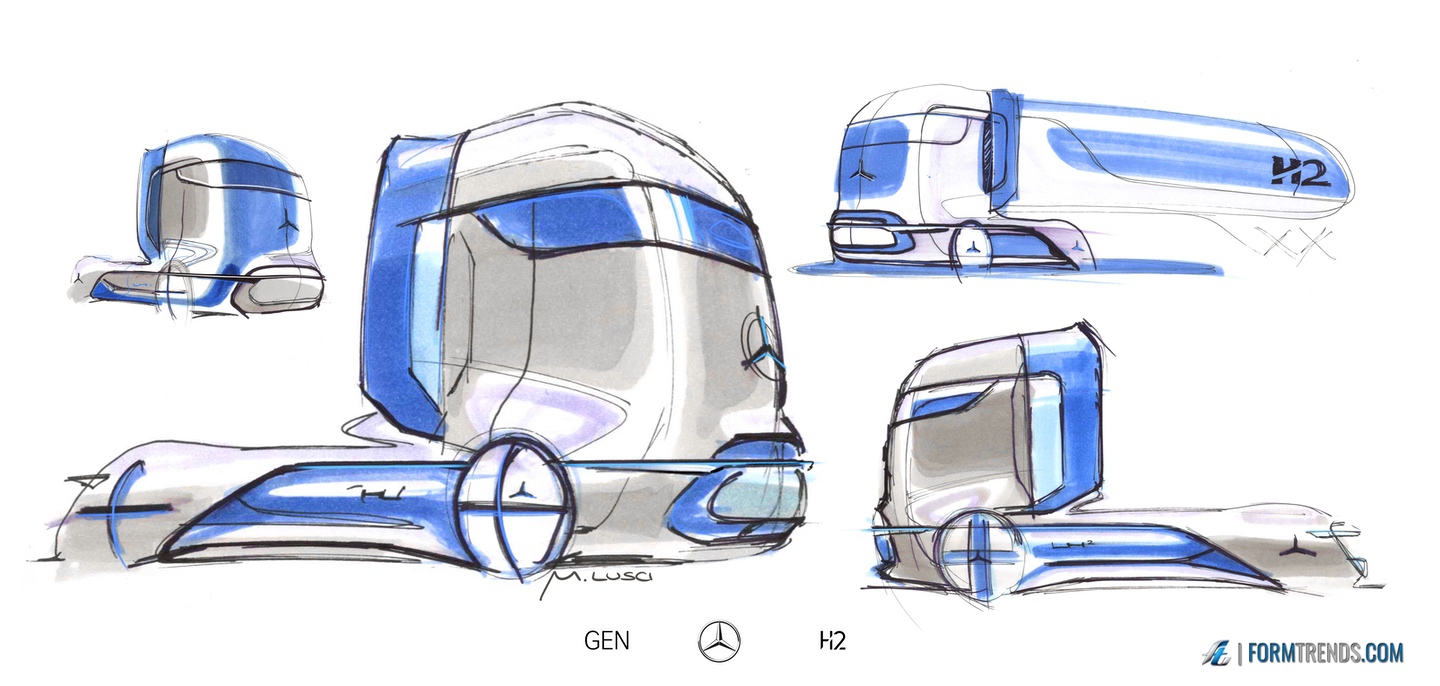 The Mercedes GenH2 hydrogen fuel cell heavy-duty vehicle was designed by the company’s in-house team in Sindelfingen. Here’s a video with project lead designer Mattia Lucsi talking us through some of the design details of the new truck.