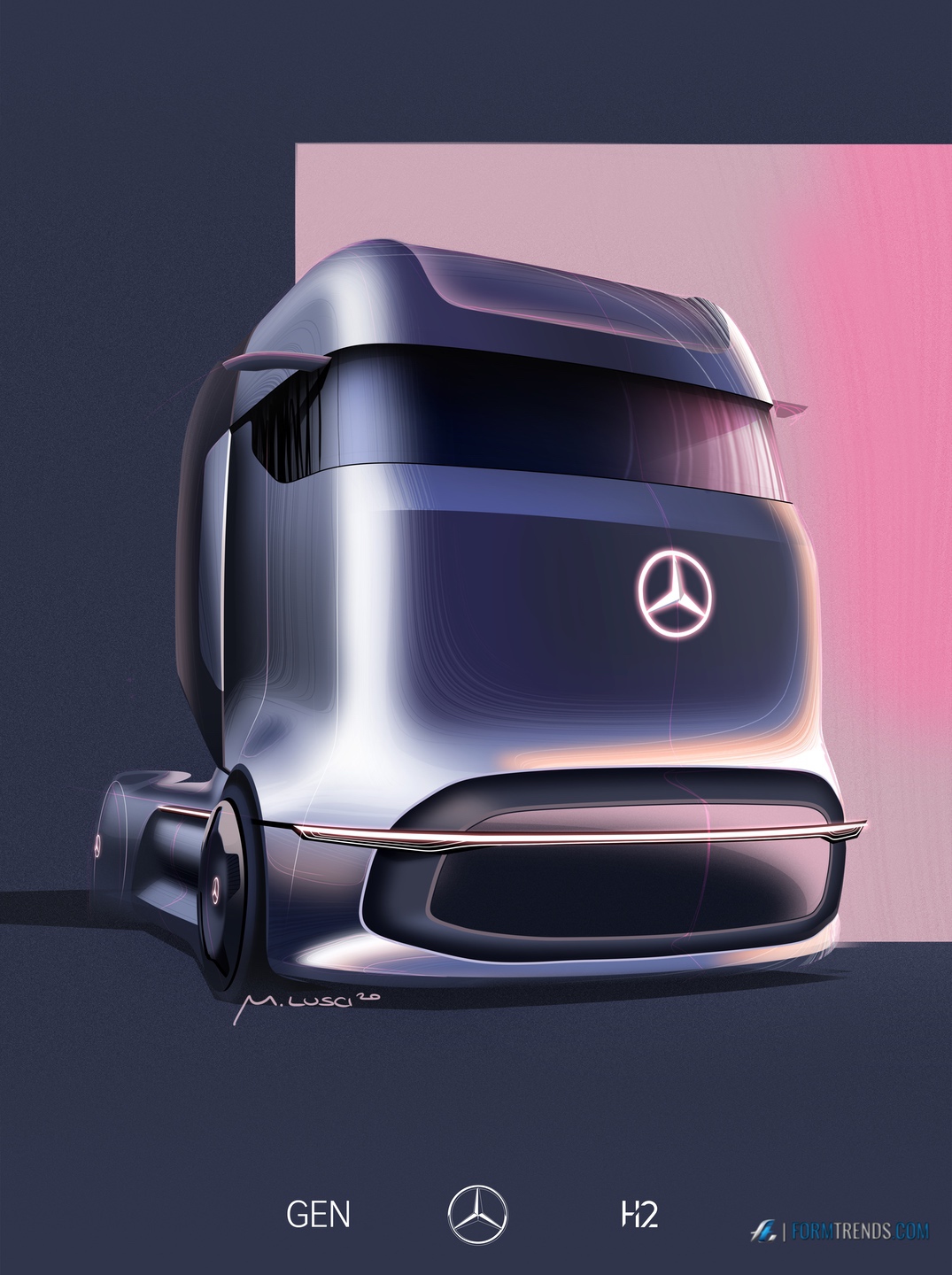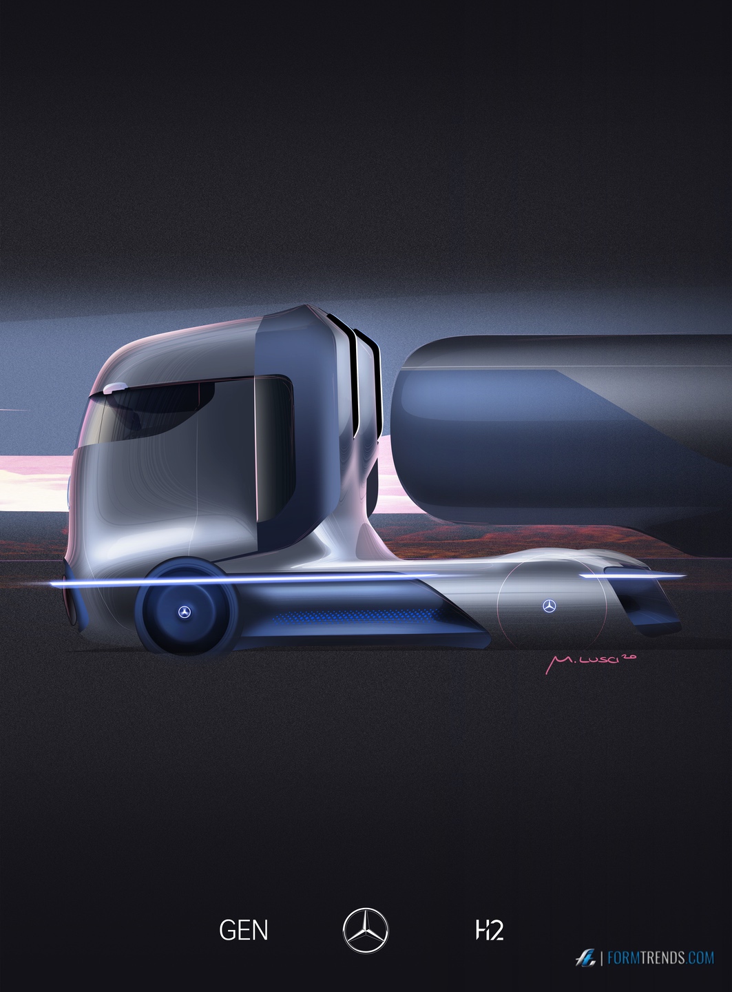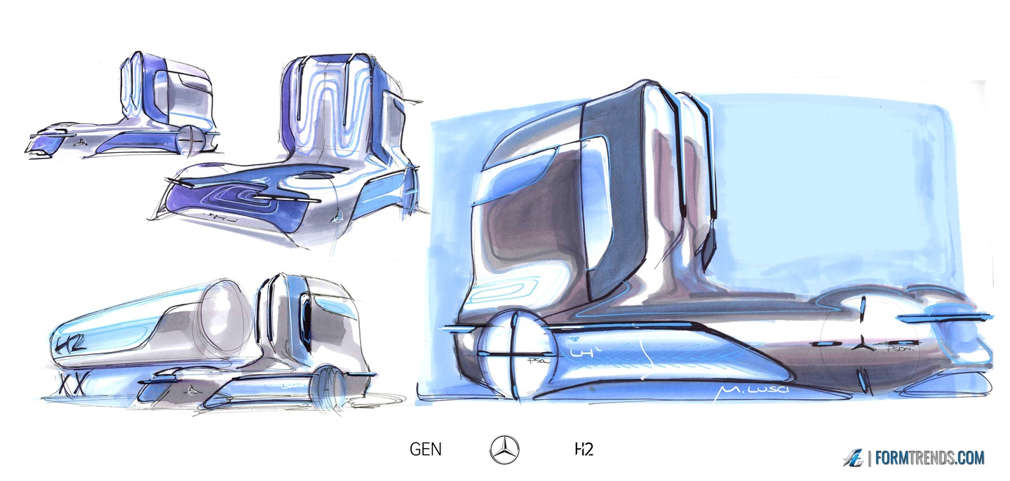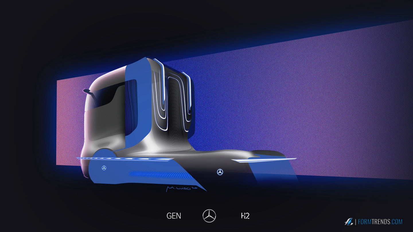 The Mercedes GenH2 hydrogen fuel cell heavy-duty vehicle was designed by the company’s in-house team in Sindelfingen. Here’s a video with project lead designer Mattia Lucsi talking us through some of the design details of the new truck.