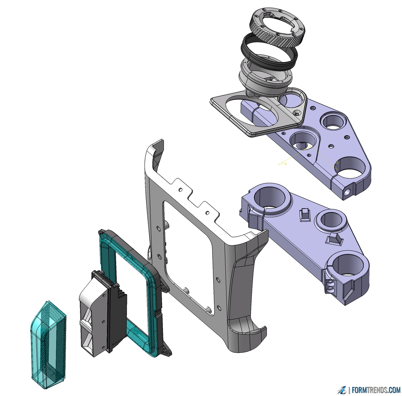 A great part of what made the original XR an icon was its purity. Rather than treat the face of the new XR338 as a superficial plastic body part, it was conceived as a family of aluminum castings that would simultaneously function as component housing, connect the suspension forks and handlebars. This constellation was designed as independent parts that proudly emphasize their mechanical functionality but are visually integrated, sharing the same chamfer, radius and surface language.
